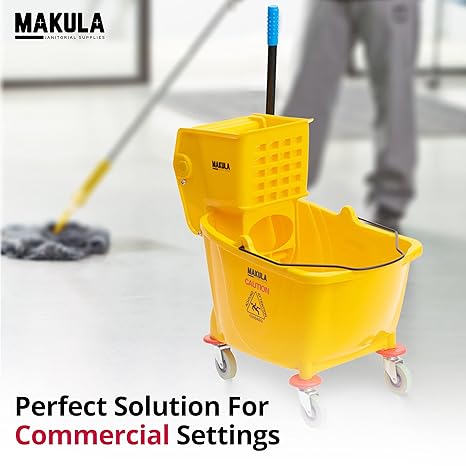 Amazon Com Makula 36 Qt Yellow Plastic Mop Bucket Side Press Wringer Combo Health Household